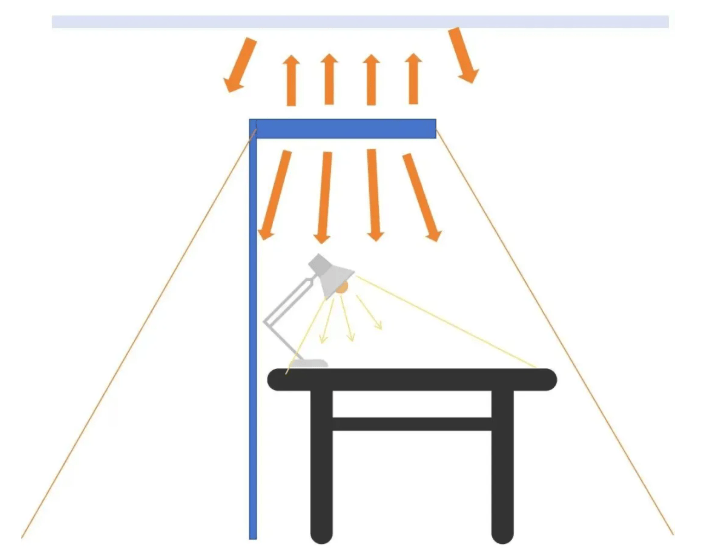 和传统台灯相比,它最大的区别在于光线的来源位置和分布方式: