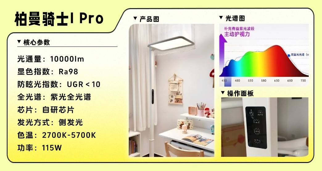 护眼性能:采用八重导光结构+美国普瑞定制SunSilk Pro™类太阳全光谱灯珠,搭配SunShell™360°立体光场消除暗角,提升73%光照柔和度;独创RRT2.0红光养眼技术,可降低92%近视概率、缓解83%用眼疲劳,软硬件协同实现旗舰级护眼表现。