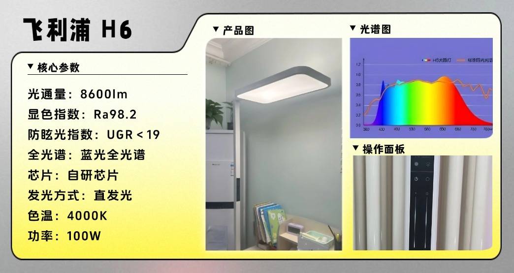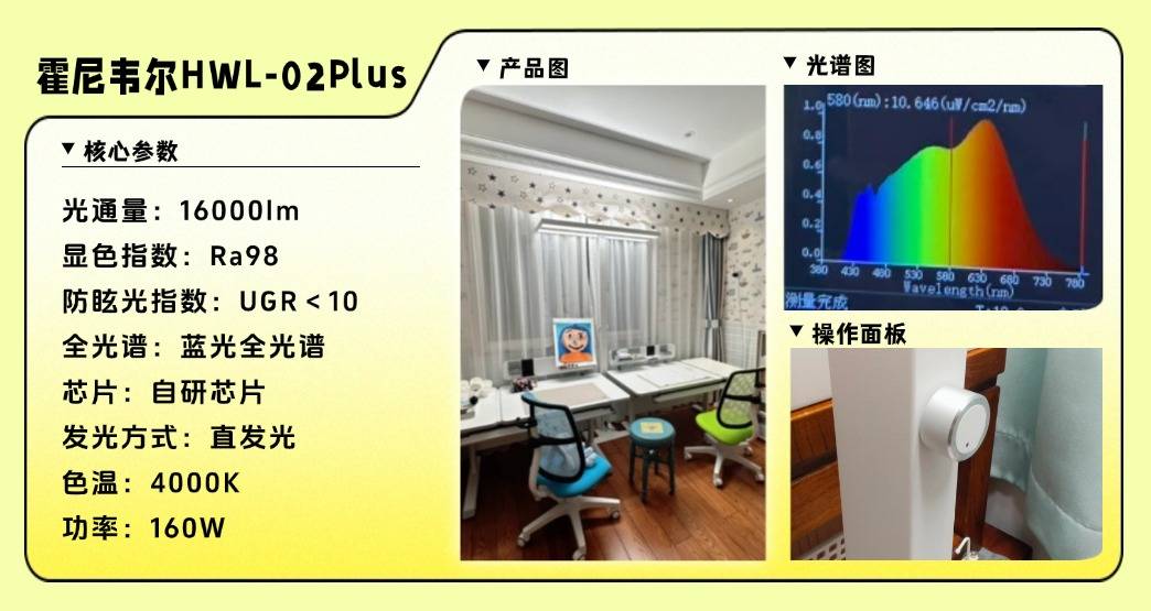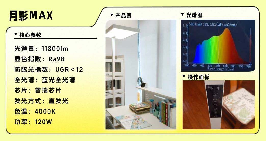 护眼性能:灯头外延19cm扩大照射范围,8600lm光通量可均匀照亮学习区域;搭载全光谱芯片,显色指数Ra98.2可以较好还原绘本、画作等细节色彩,光线分布均衡,阅读、绘画或手工时视觉更清晰。