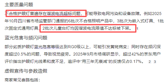 1、虚标参数的护眼灯