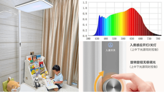 医学护养眼最强标杆:独创的RRT2.0红光养眼黑科技,搭载与美国普瑞Bridgelux联合定制的SunSilk Pro™类太阳全光谱灯珠,实现有效避免92%的近视风险。