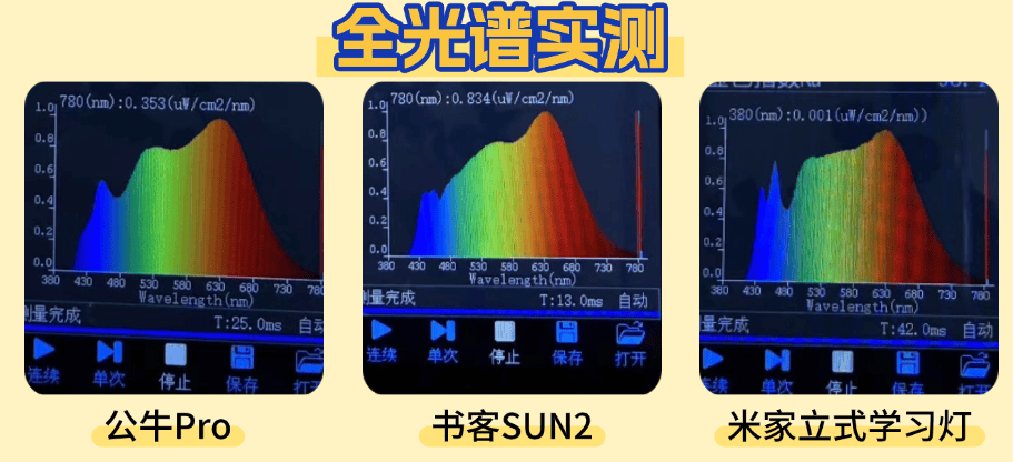 实测原因:全光谱是展现护眼大路灯是否真正护眼的关键,市面上的护眼大路灯都宣传是全光谱,但实际上,存在着许多光谱并不连续,蓝光峰值过高、红光缺失的现象,不仅影响着光线舒适度,还会影响视力健康。