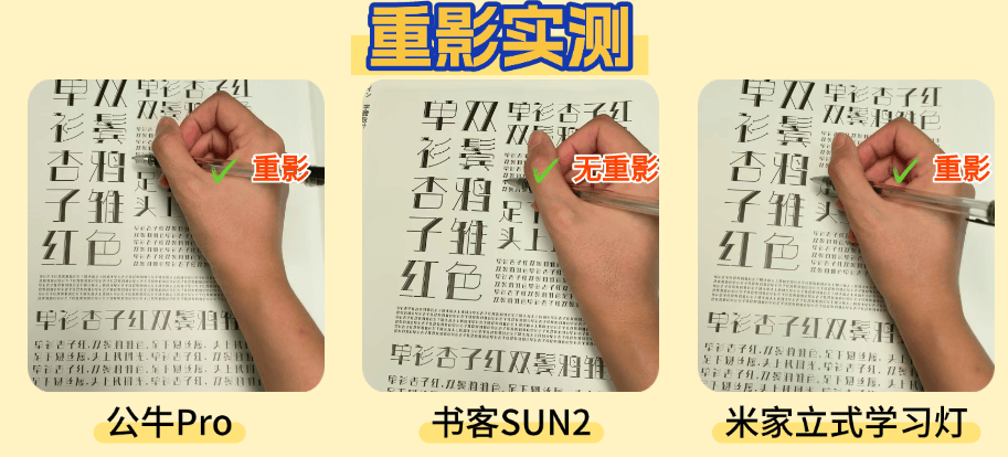 实测原因:重影是护眼大路灯里一个容易被忽视的隐患,很多灯在纸面或书本上会出现重影,看似小问题,其实对眼睛负担很大,孩子长时间在这种环境下写作业,会因为文字边缘模糊不清,加重眼球调节压力,最终影响视力健康。