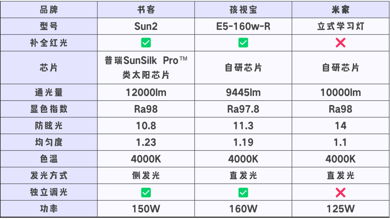 在当今近视趋势严重的时代,护眼大路灯成为众多有娃家庭提升光线质量的重要选择,护眼大路灯能够呈现舒适的光线减少不良光线带来的近视风险,但市场上品牌繁多,功能各异,让人眼花缭乱,甚至还存在一些劣质护眼灯,不仅达不到舒适的灯光效果,还会因为高蓝光、眩光以及频闪等想象影响视力健康,作为一名小家电测评博主,近期发现私信很多伙伴都在询问:米家护眼灯好吗?书客、米家、孩视宝三款护眼大路灯哪款好等的问题,为解决大家的烦恼,我秉持着公正公开的心理,给大家带来一期有关书客SUN2、米家立式学习灯、孩视宝E5-160W-RS的测评分享,从多个关键参数入手,探究它们在综合体验上的差异。