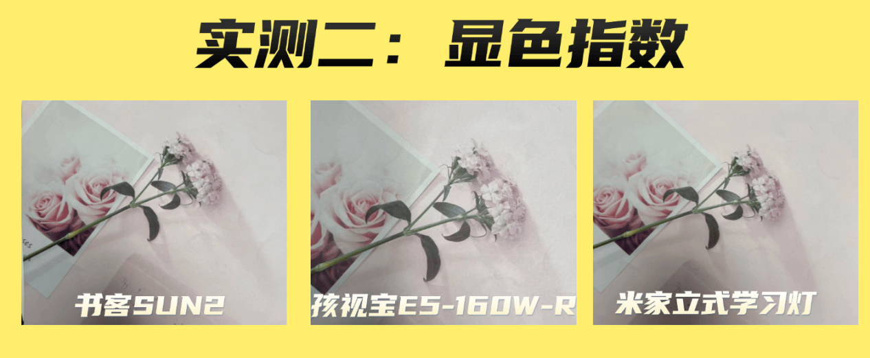 从图片中可能视觉上很难看到差距,但是从实测数据中我们可以清晰的看到,其中书客SUN、米家立式学习灯这两款护眼大路灯实际显色指数都达到了Ra98以上,并且值得一提的是,书客还是一款符合了TM—30光学标准的护眼大路灯,以最严苛的要求来对显色指数的把控,色彩逼真度更是直接达到了Rf≥99。