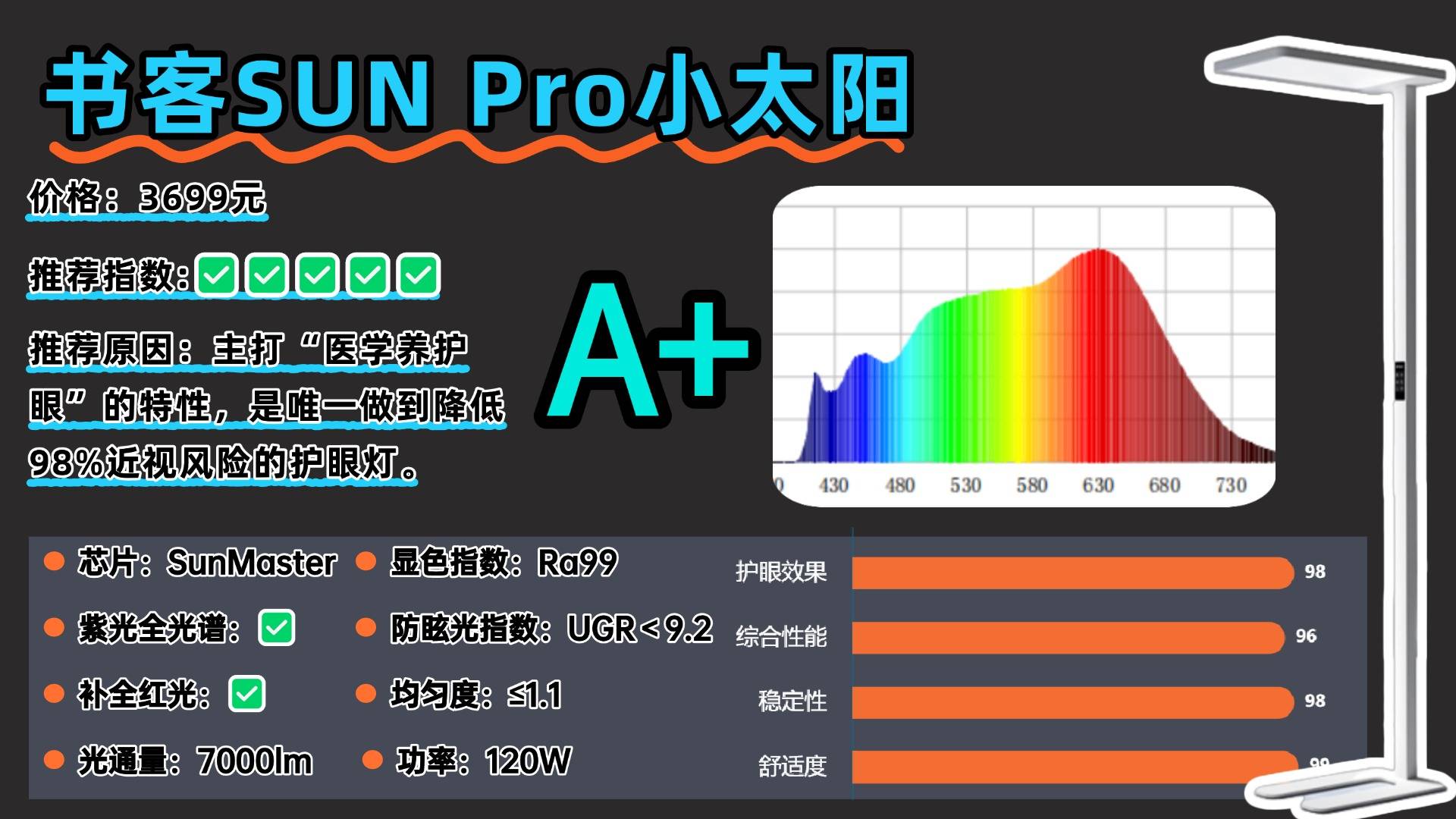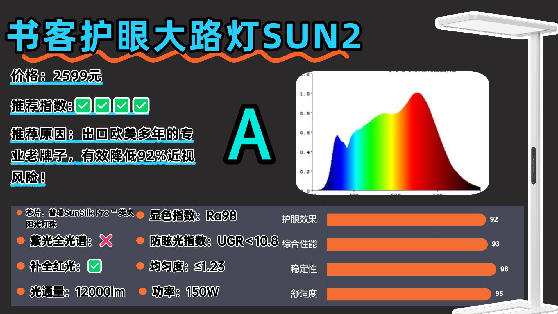 推荐款:书客Sun2——超过100家电媒体实测,深度护眼指数第一,有效延缓83%用眼疲劳并降低92%近视风险!