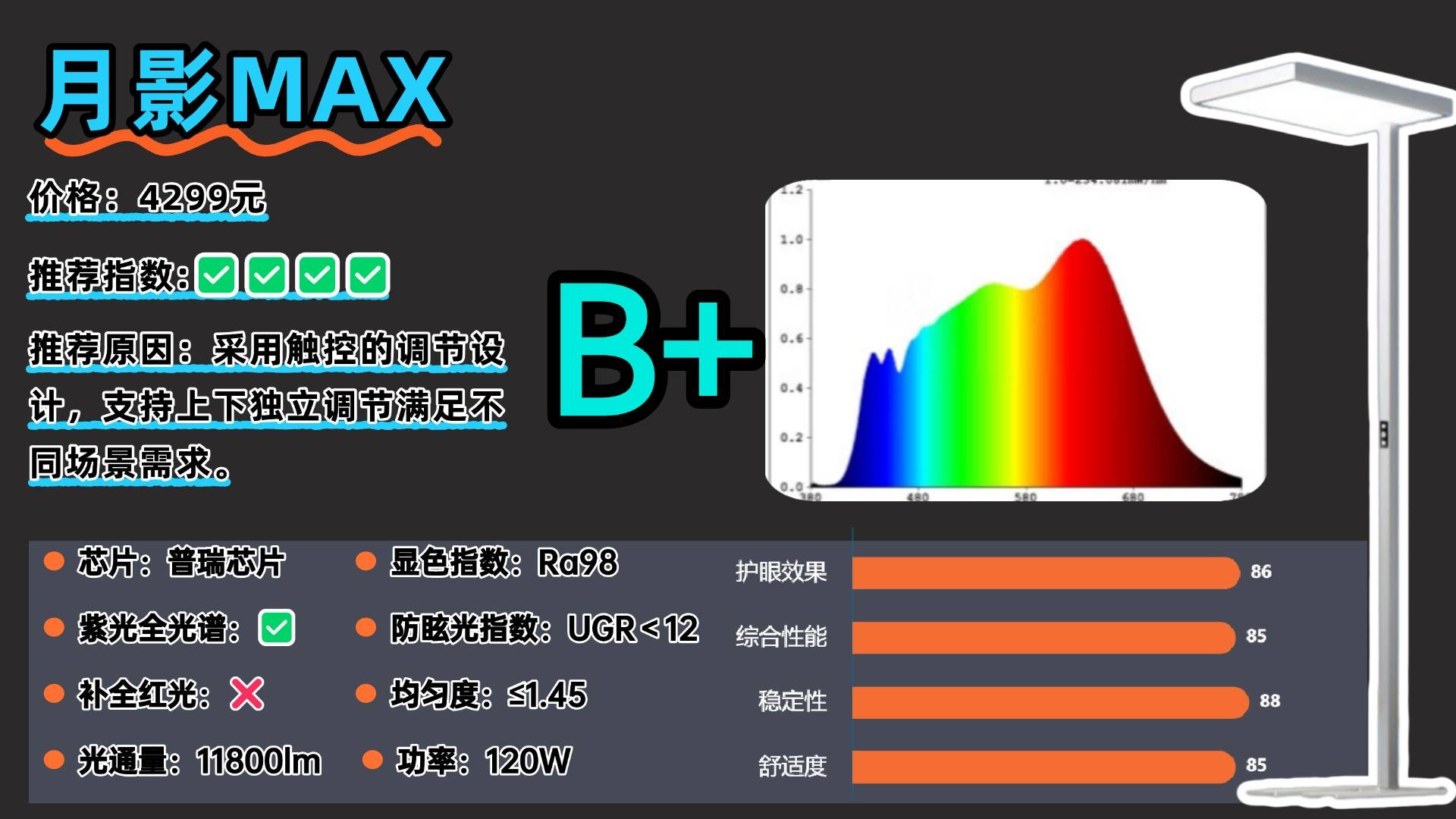 推荐款:月影Max——触控式调节,支持上下独立控光满足不同灯光需求。